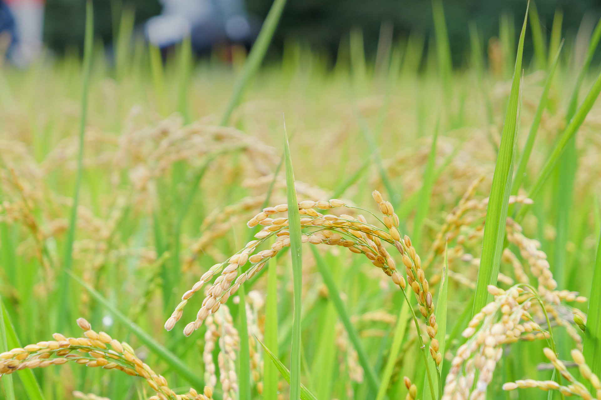 黄金色の稲穂を刈り取り、自然の恵みに感謝。
