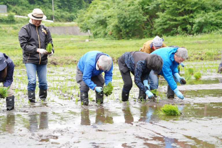 蔵人と共に八仙の田んぼへ入り、手植えで苗をひと株ずつ丁寧に植えていきます。泥の感触や土の香りを感じながら、酒づくりの原点である「米」を自らの手で育てる喜びを体験します。